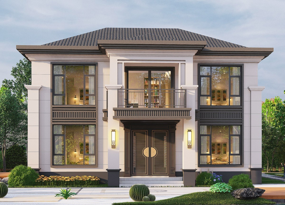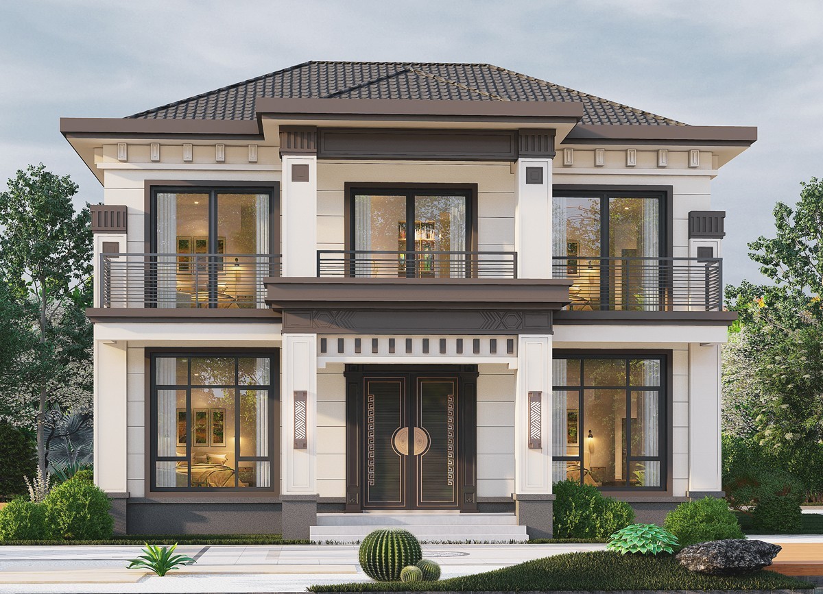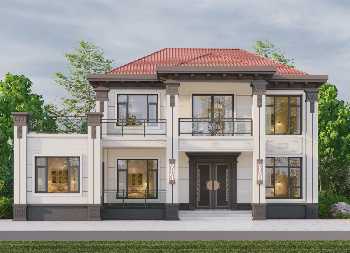 迪庆005 两层新中式(11.36x11.76米)-【易设计】